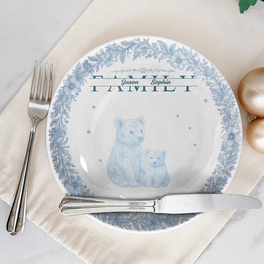 Custom Bear Family Ceramic Plate with Stand – Personalized Gift for Home & Family Decor