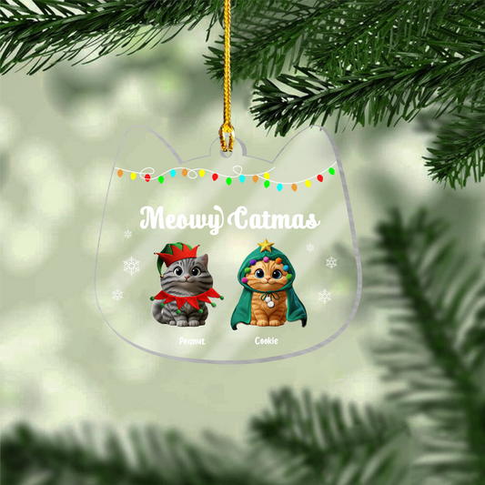 Custom Cat Christmas Ornament – Personalized "Meowy Catmas" Decoration with Pet Names