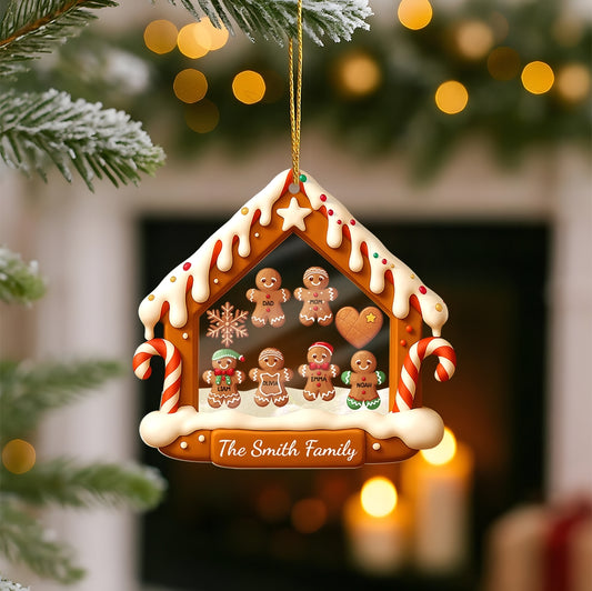 Custom Acrylic Shaker Ornament – Personalized Gingerbread House Family Christmas Decoration