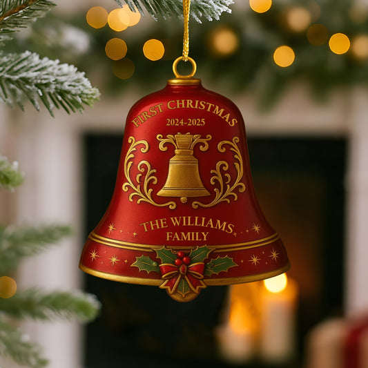Custom Christmas Bell Ornament – Personalized Color, Year & Family Name Decoration