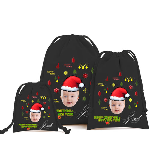 Custom Christmas Drawstring Gift Bag – Personalized with Photo & Name