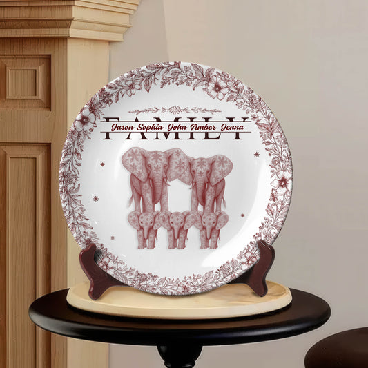 Custom Elephant Family Ceramic Plate with Stand – Personalized Gift for Home & Family Decor