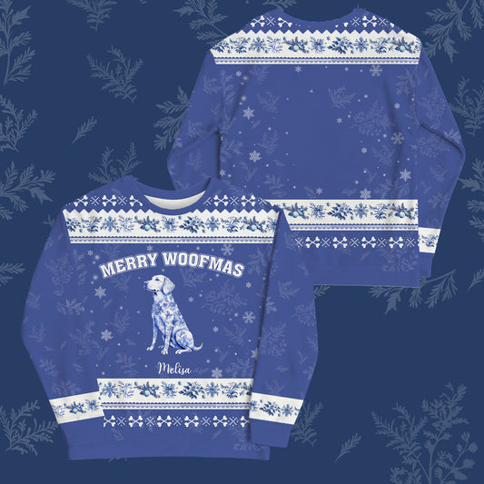 Custom Dog Lover Christmas Sweater – “Merry Woofmas” - Personalized Dog Image, Name & Color , Cozy Holiday Sweatshirt Gift for Pet Owners