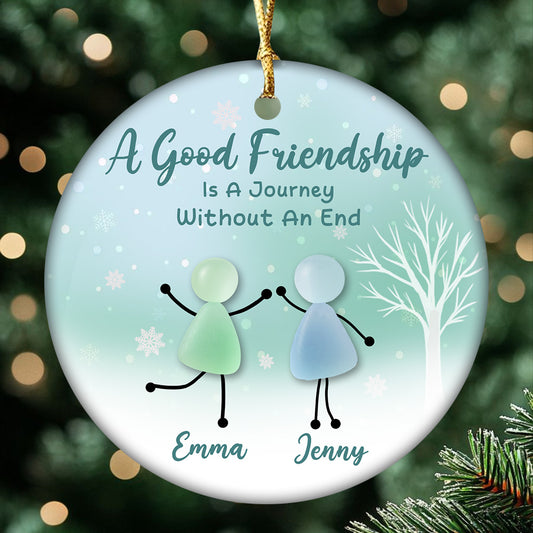 Custom Friendship Ceramic Ornament – “A Good Friendship Is a Journey Without an End” - Personalized Names & Colors, Best Friend Christmas Gift