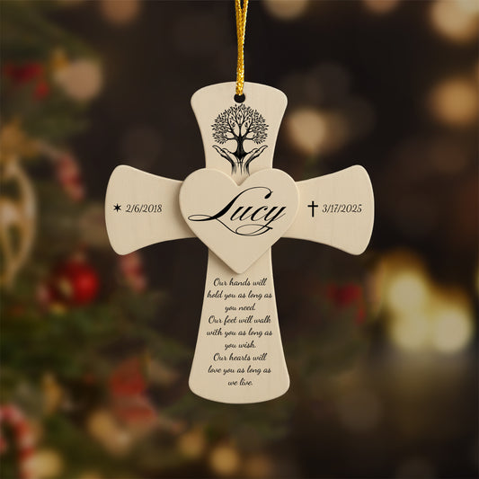 Custom Heart & Cross Memorial Decoration - Personalized Memorial Cross Ornament