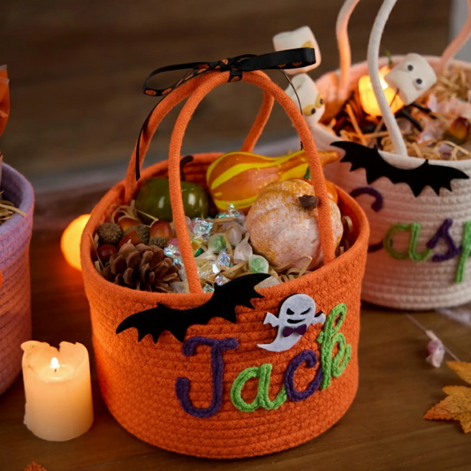 Custom Halloween Treat Bag with Name – Personalized Trick or Treat Basket | Customizable Candy Tote for Kids | Halloween Basket for Boys & Girl | Perfect Gift for Trick or Treating