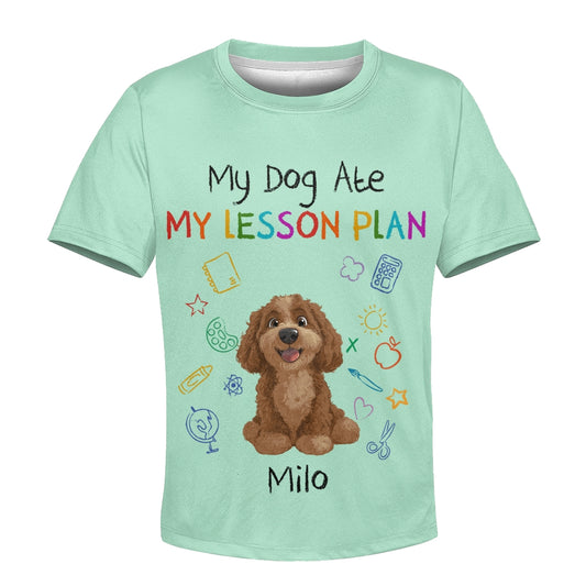 Custom Kids 3D T-Shirt – Personalized Funny "My Dog Ate My Lesson Plan" with Dog & Name
