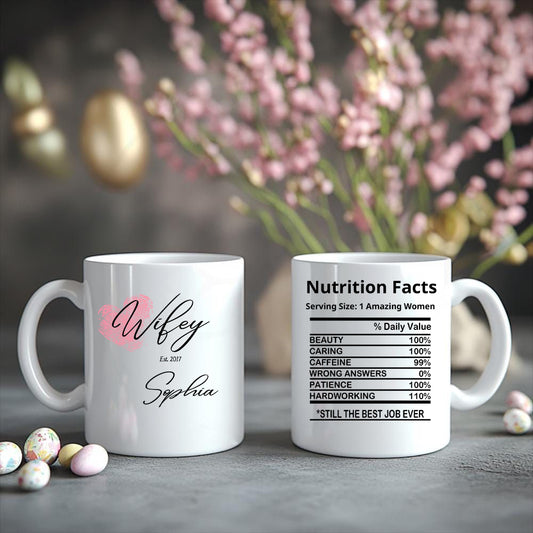 Custom Hubby and Wifey Ceramic Mugs – Personalized Funny Nutrition Facts Coffee Cup Gift for Couples