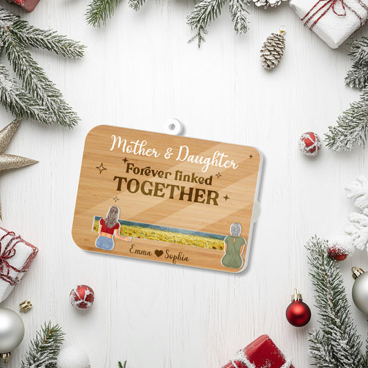 Custom Mother & Daughter Wooden Card – “Forever Linked Together” - Personalized Names & Art Background