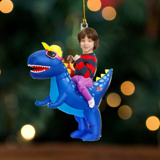 Custom Kid Face Blue Dinosaur Acrylic Ornament – Personalized Acrylic Photo Ornament Gift For Kids