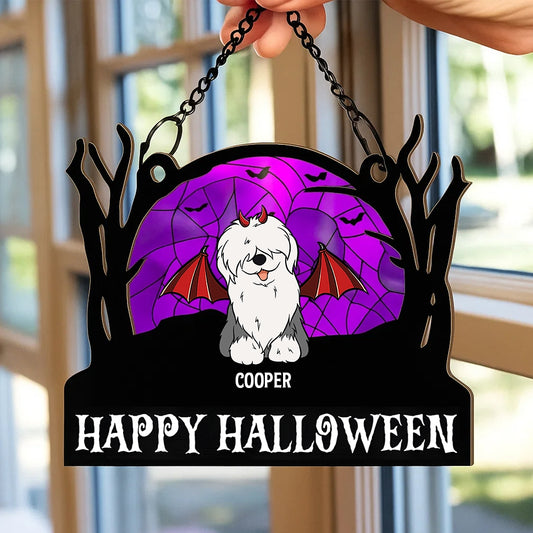 Happy Dogs Halloween Pets - Personalized Window Hanging Suncatcher Ornament
