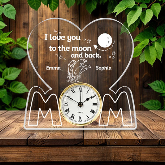 I Love You to the Moon and Back Mom Gift – Custom Animal Personalized Acrylic Desk Clock