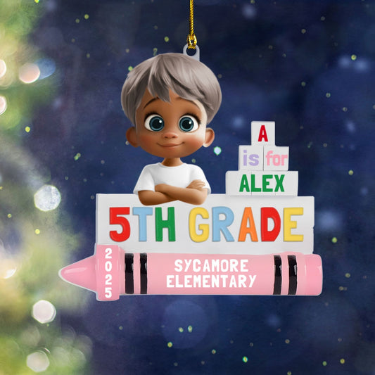 Grade Christmas Acrylic Ornament 2025 – Personalized School Ornament for Kids, Little Boys & Girls