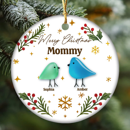 Custom Family Bird Ceramic Ornament – Personalized Names & Birds , Holiday Gift for Family