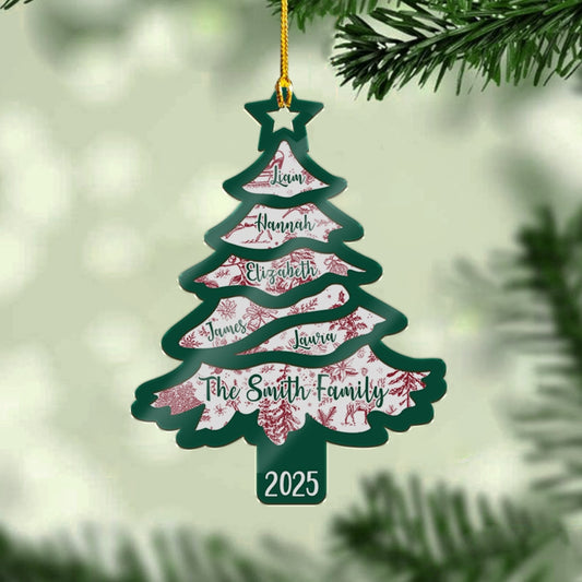 Family Name Christmas Tree Ornament – Personalized Holiday Decoration with Year