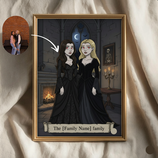 Personalized Halloween Family Portrait | Spooky Vampire Custom Gift for Family | Gothic Home Decor Wall Art