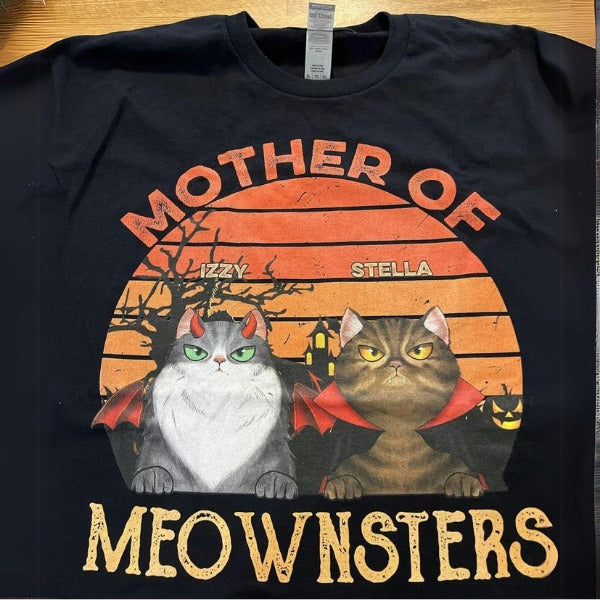 Custom Halloween 3D T-Shirt – Personalized “Daddy of the Meownsters” Cat & Owner T-Shirt