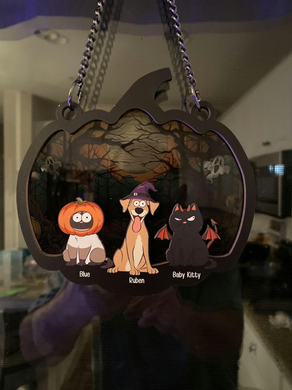 Happy Dogs Halloween Pets - Personalized Window Hanging Suncatcher Ornament