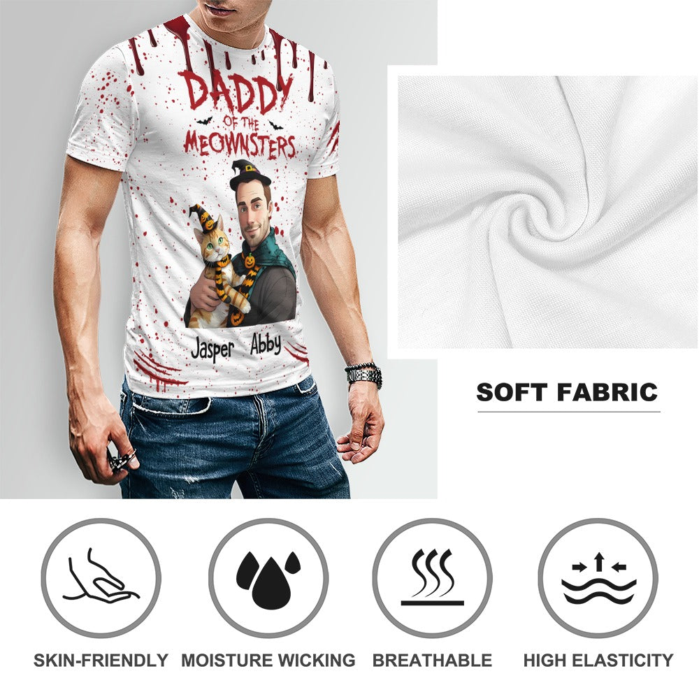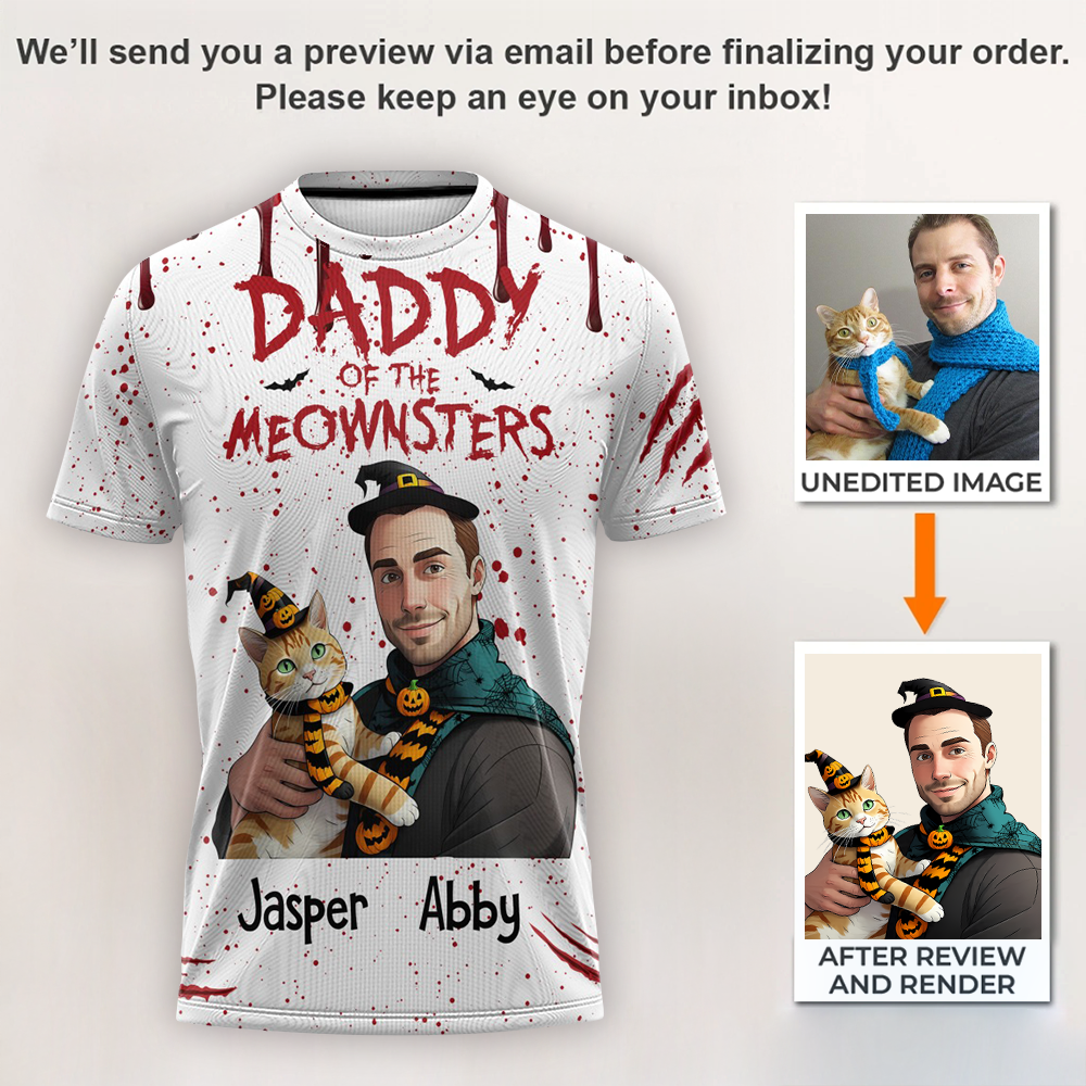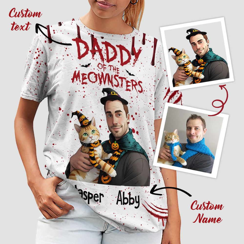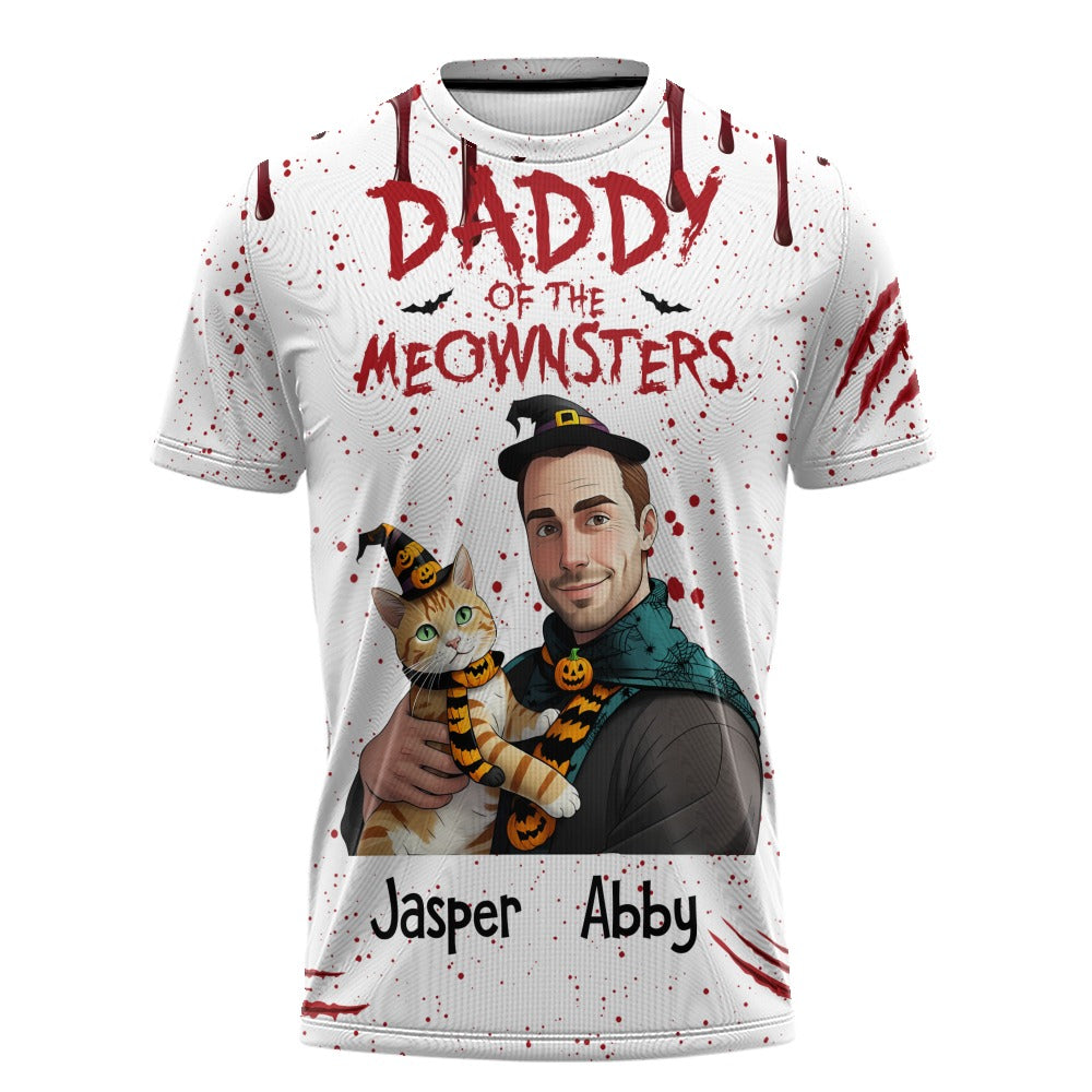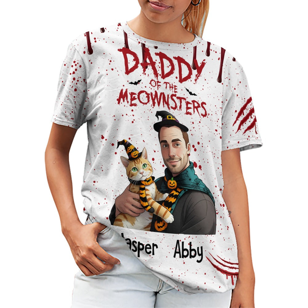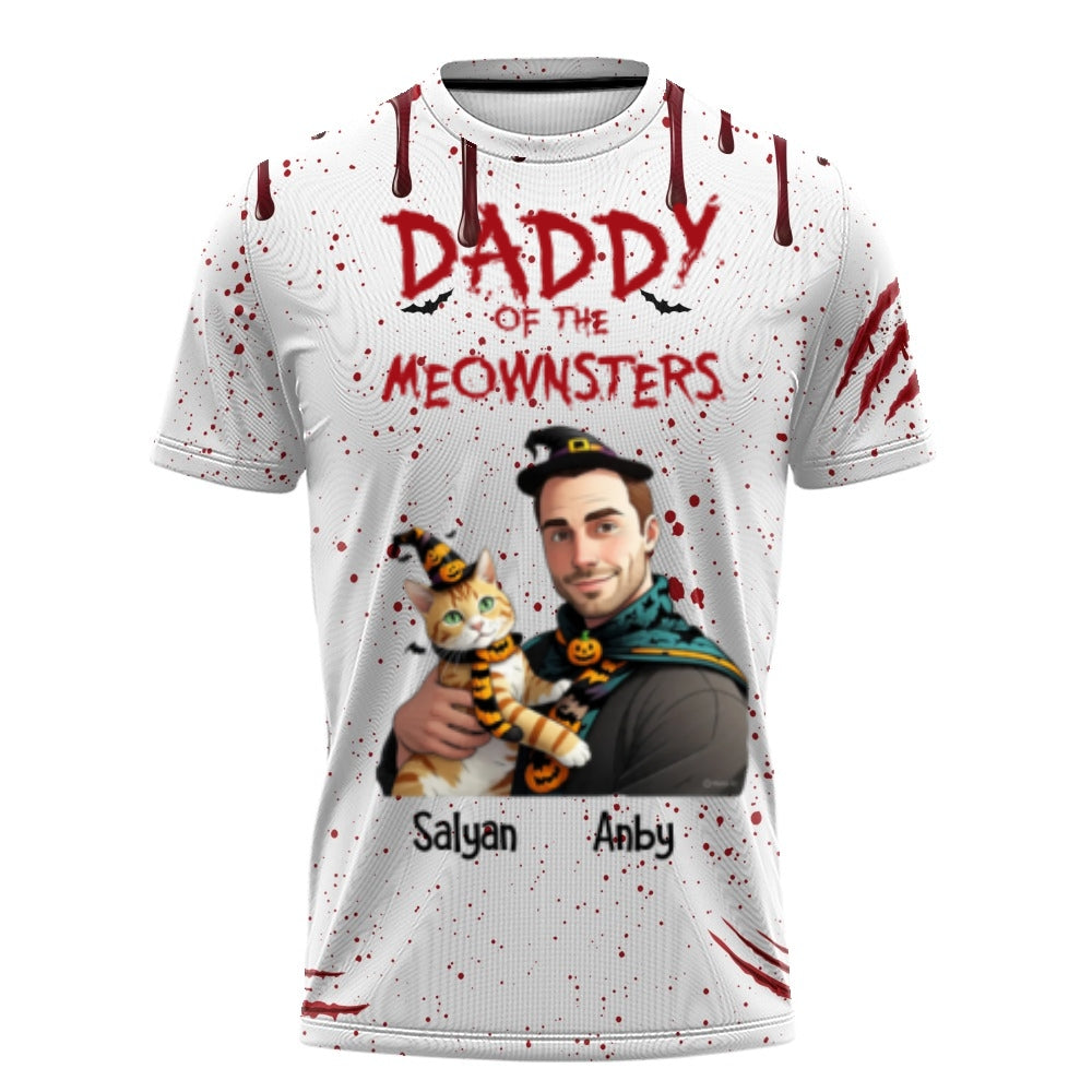 Custom Halloween 3D T-Shirt – Personalized “Daddy of the Meownsters” Cat & Owner T-Shirt
