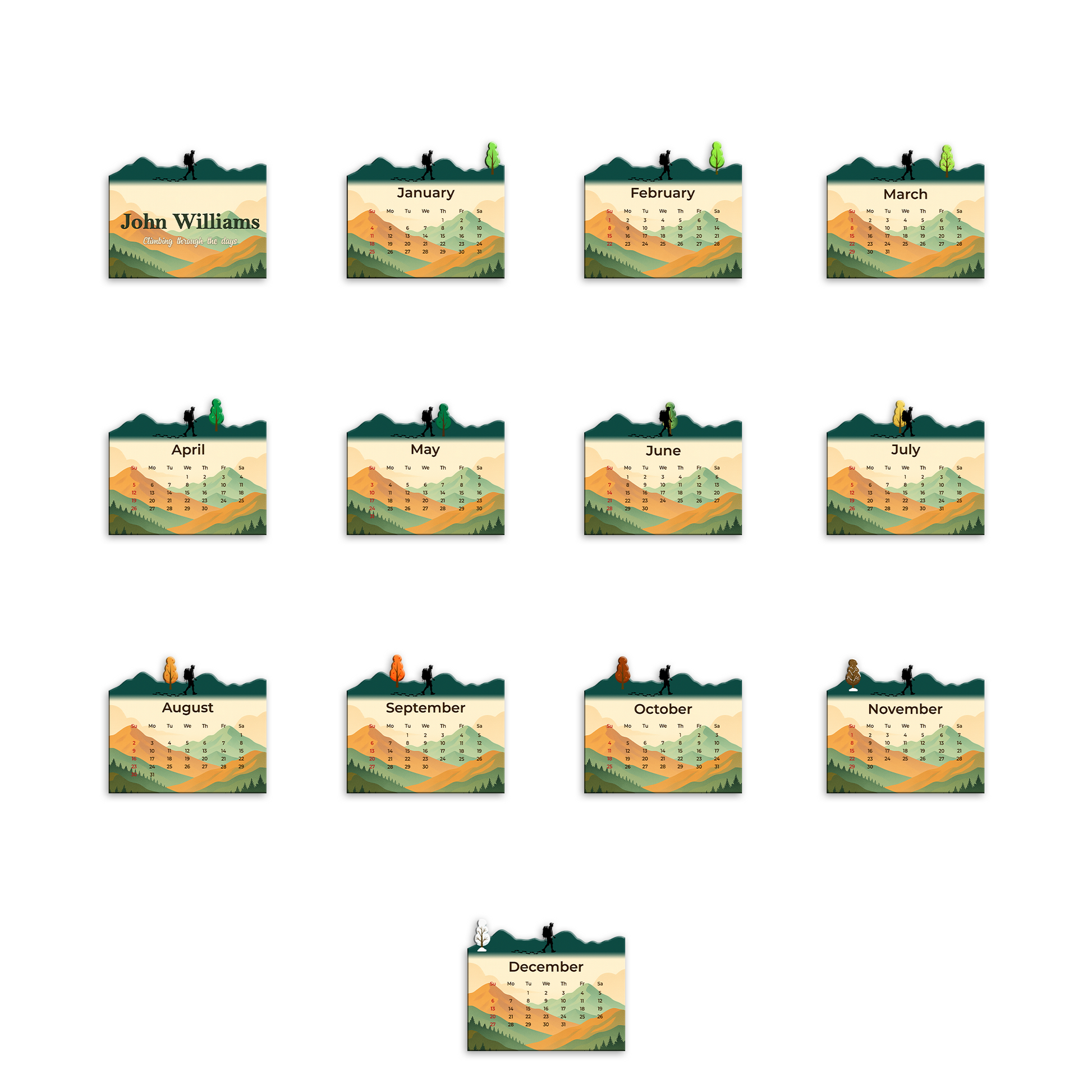 Custom Name Calendar 2026 with Wooden Stand – Personalized Adventure Desk Calendar - Climbing Through The Days