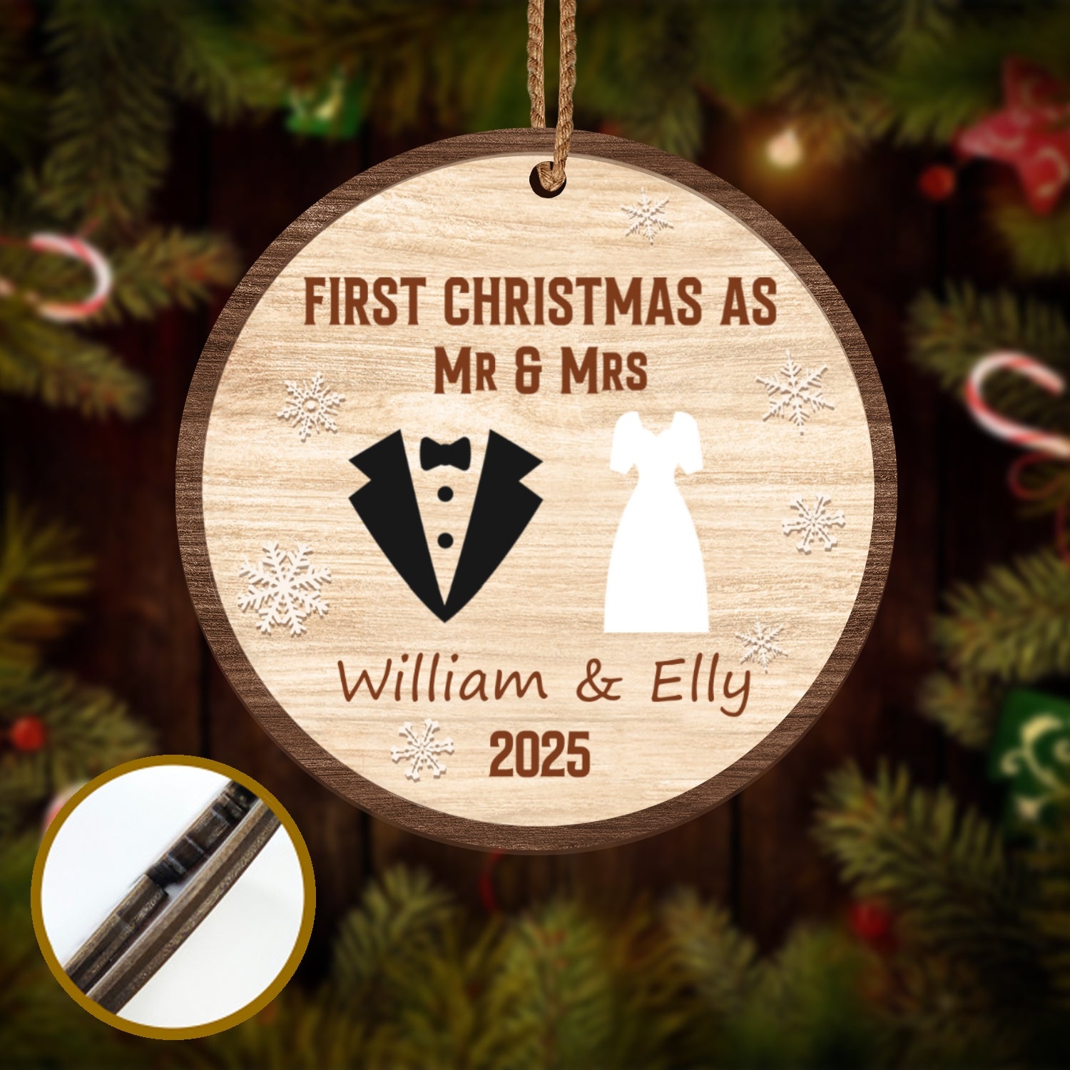 Custom 2-Layered Wooden Ornament – Couple Christmas Ornament 2025, Personalized Newlywed Gift, First Christmas as Mr & Mrs, Husband & Wife Xmas Decor