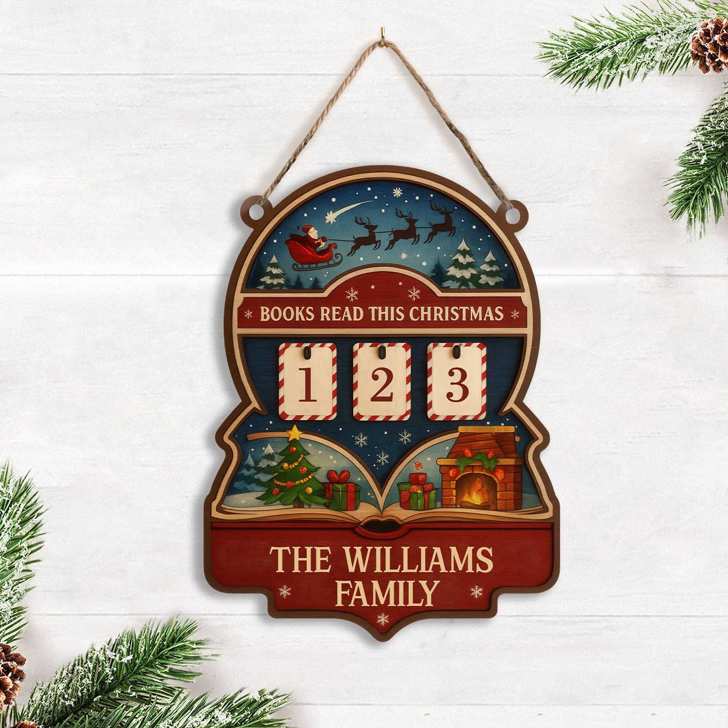 Custom Family Book Tracker Hanging – “Books Read This Christmas”- Personalized Family Name , Wooden & Acrylic Holiday Decor