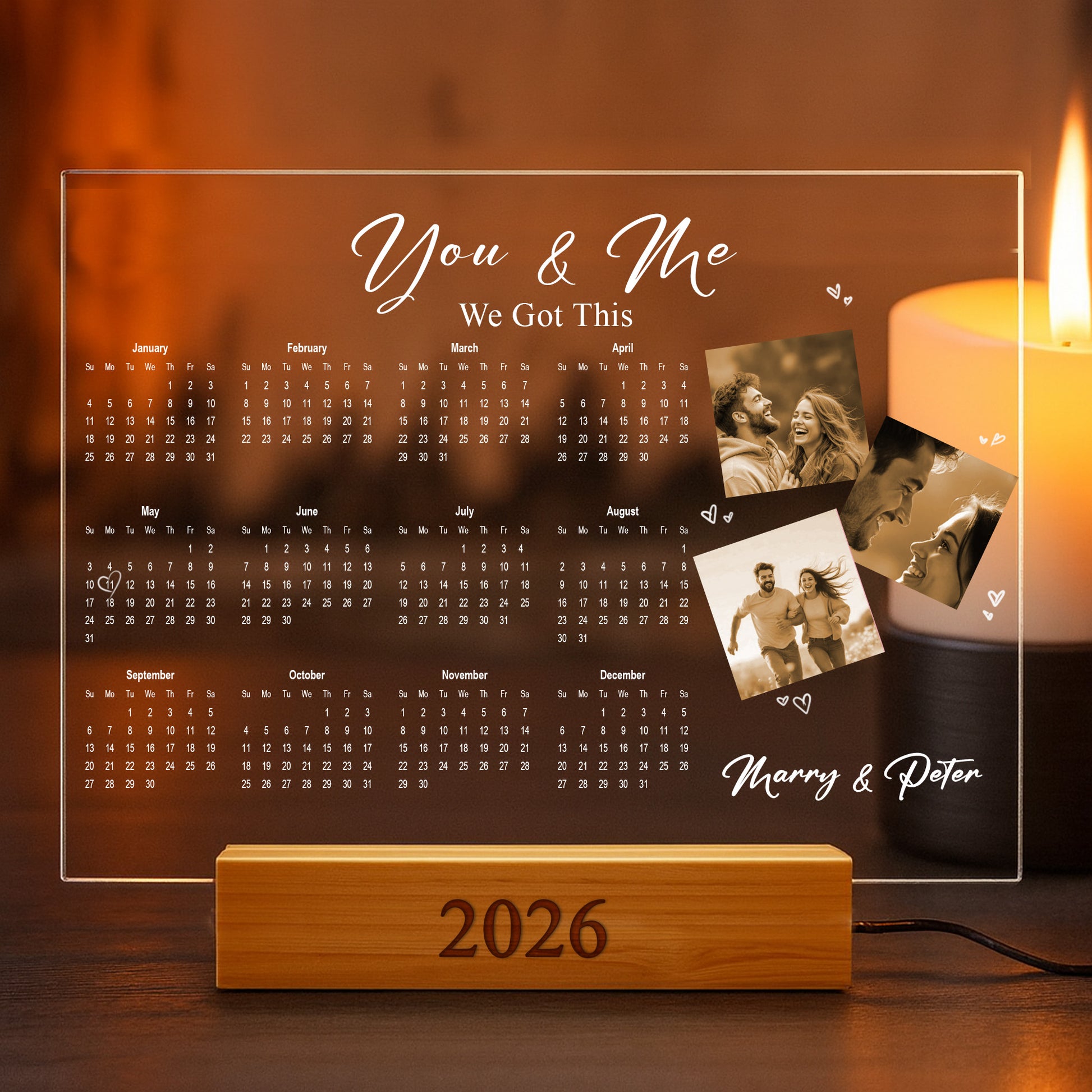 Custom LED Acrylic Calendar Lamp 2026 – “I Love You” Couple Version – Personalized Anniversary Gift with Photos & Names