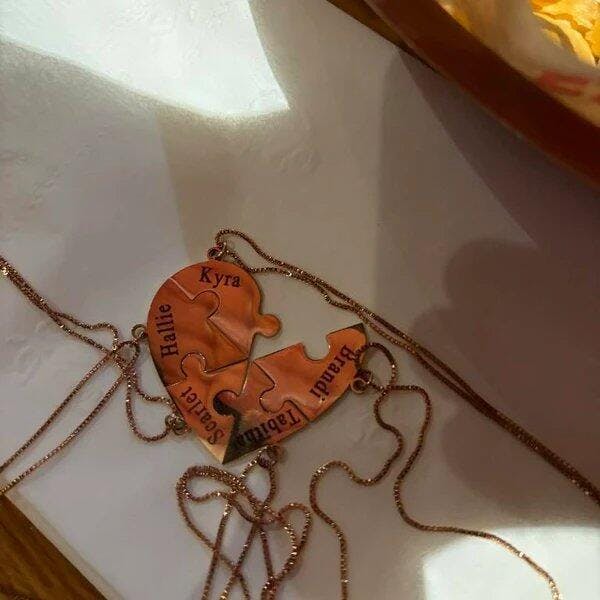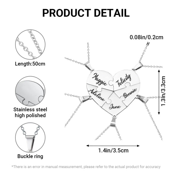 Family & Friendship Heart Puzzle Necklace – Personalized Name Pendant Set