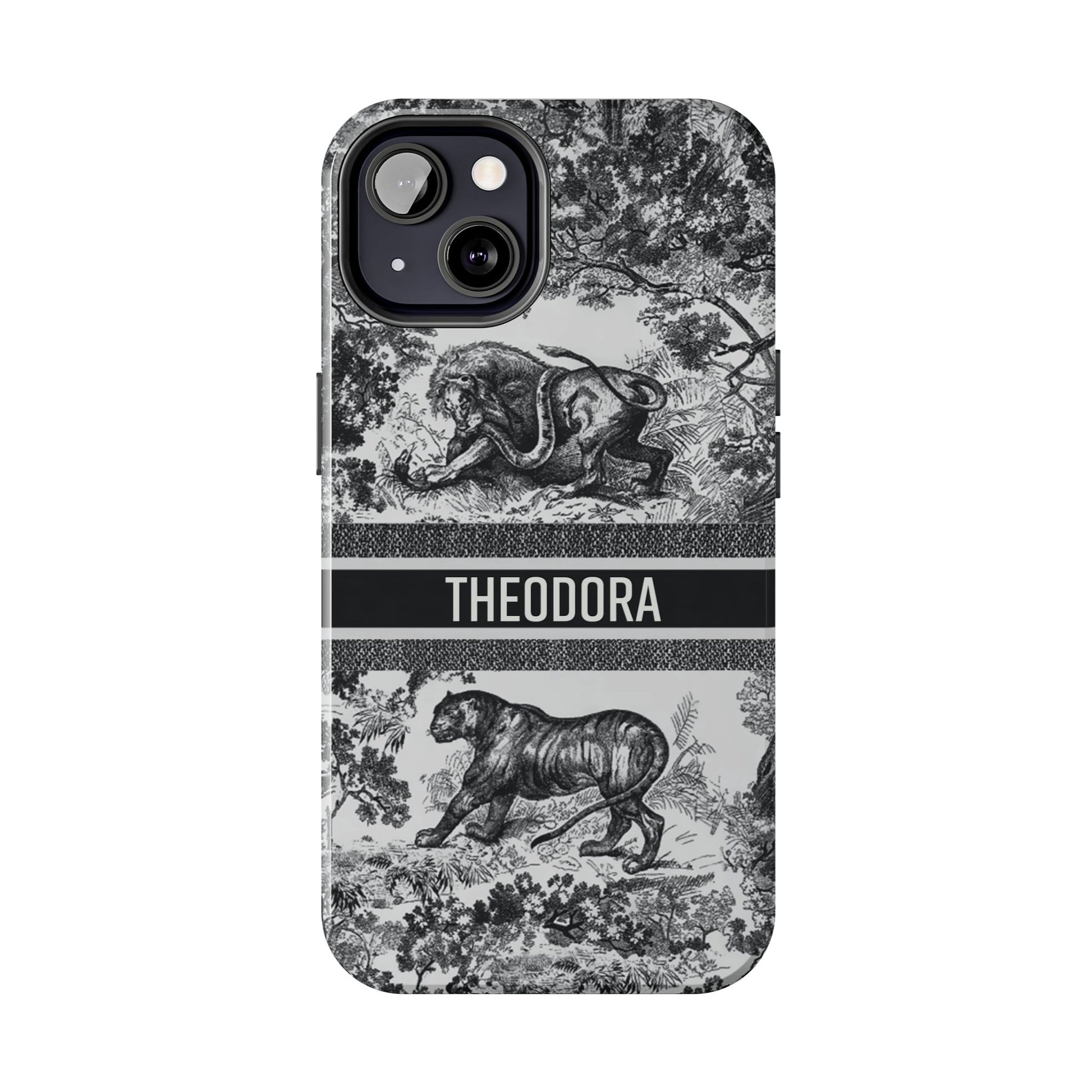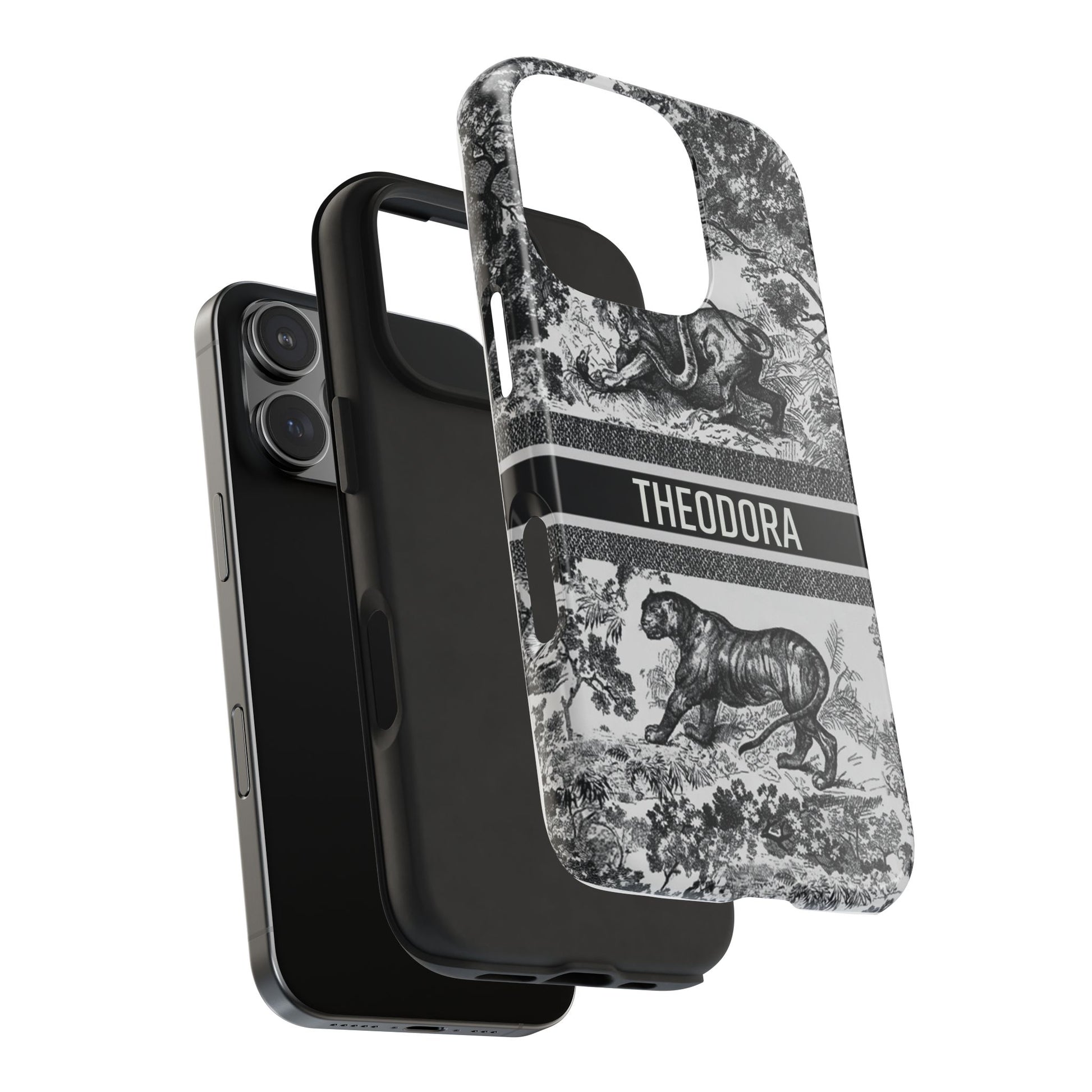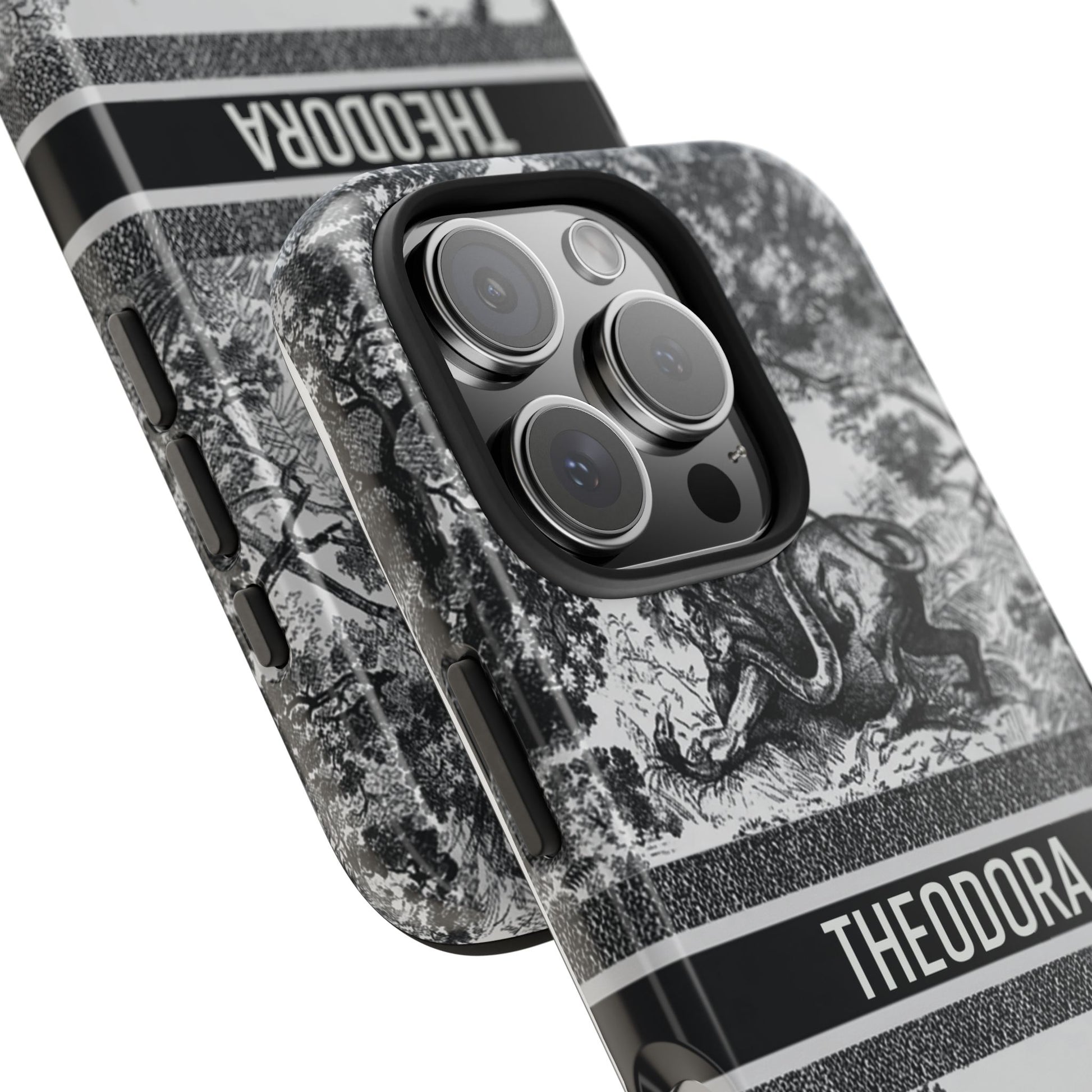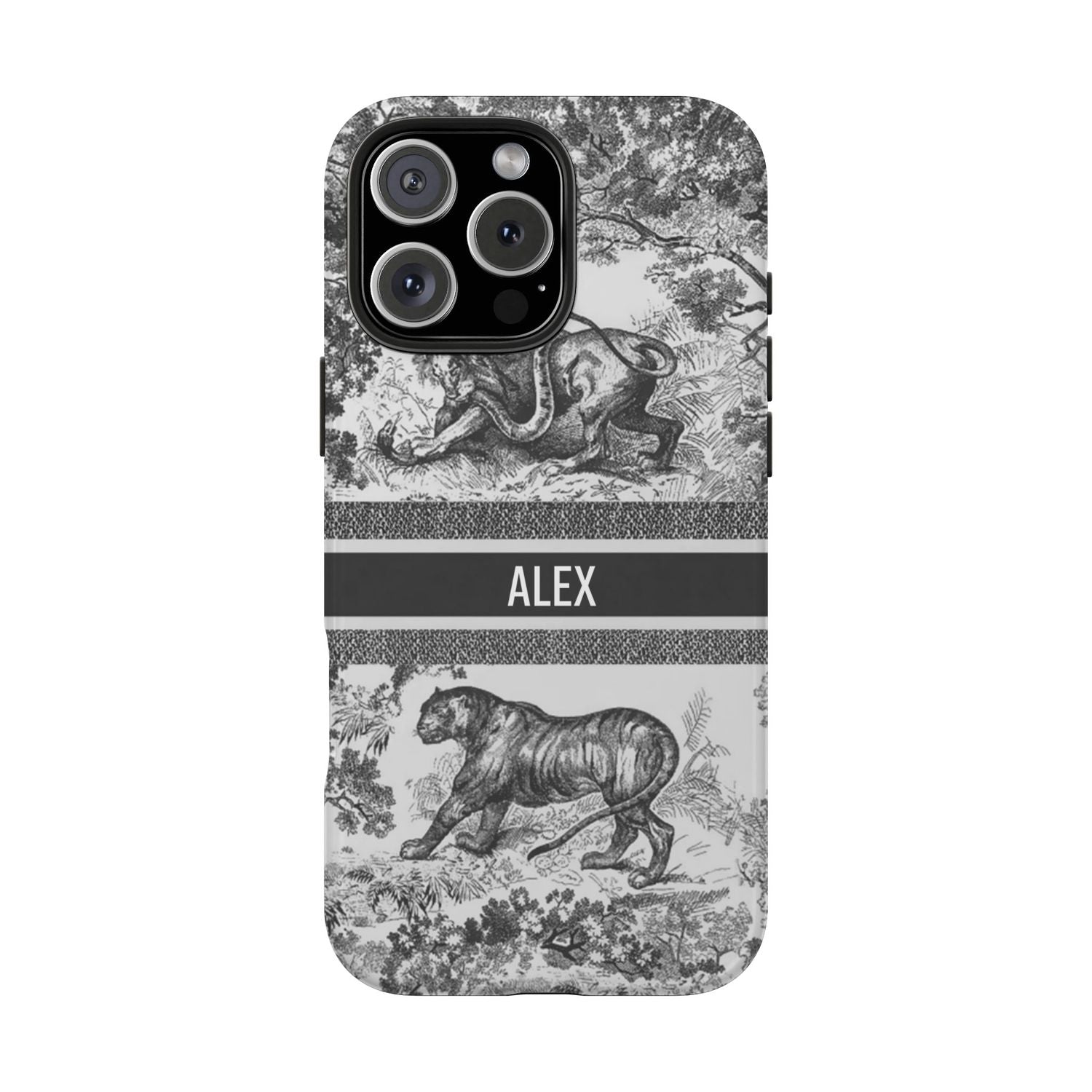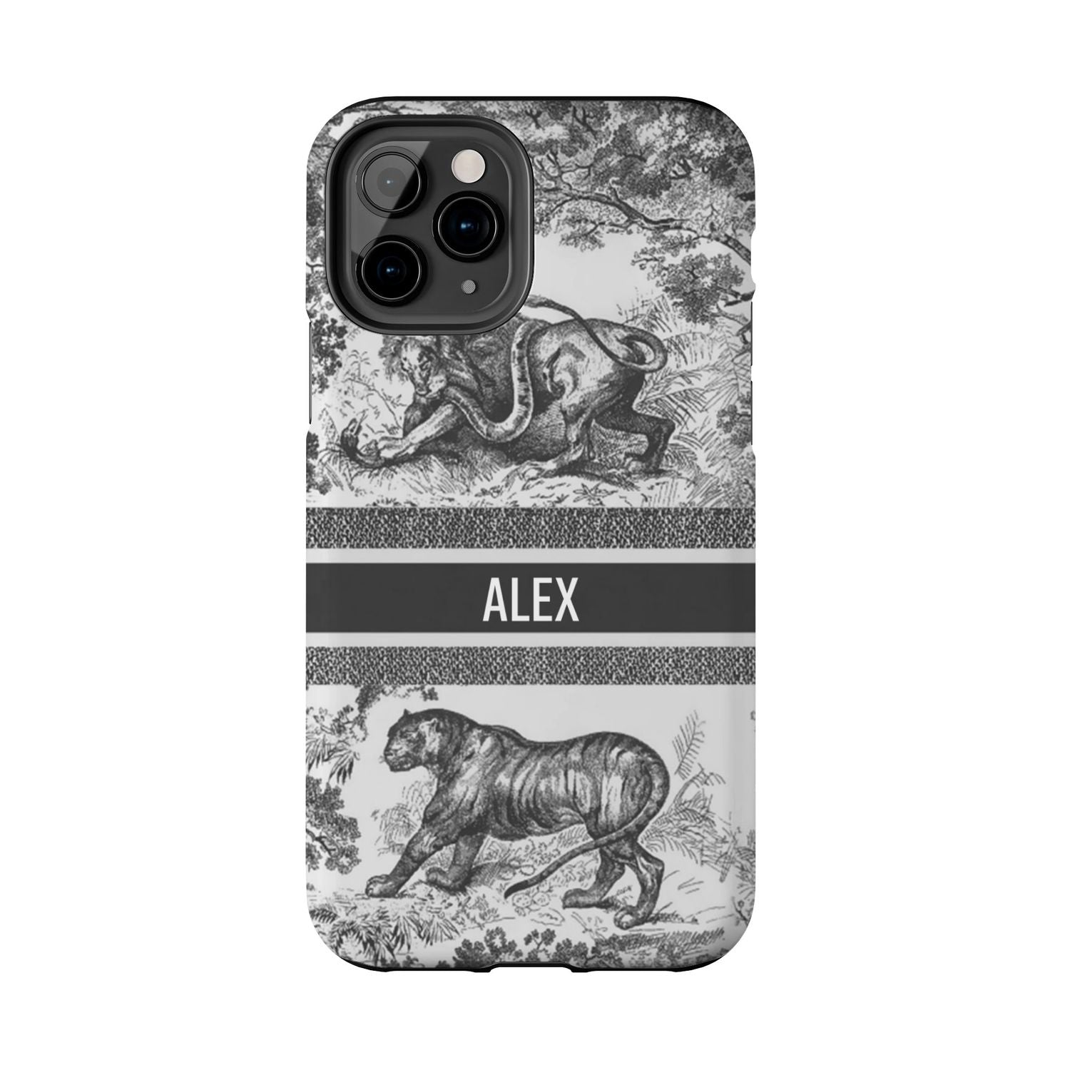 Custom Luxury Toile De Jouy Inspired Phone Case – Personalized Name Clear iPhone 12 13 14 15 16 Pro Max, Samsung 21 22 23 24 24.99 Plus/Ultra Cover
