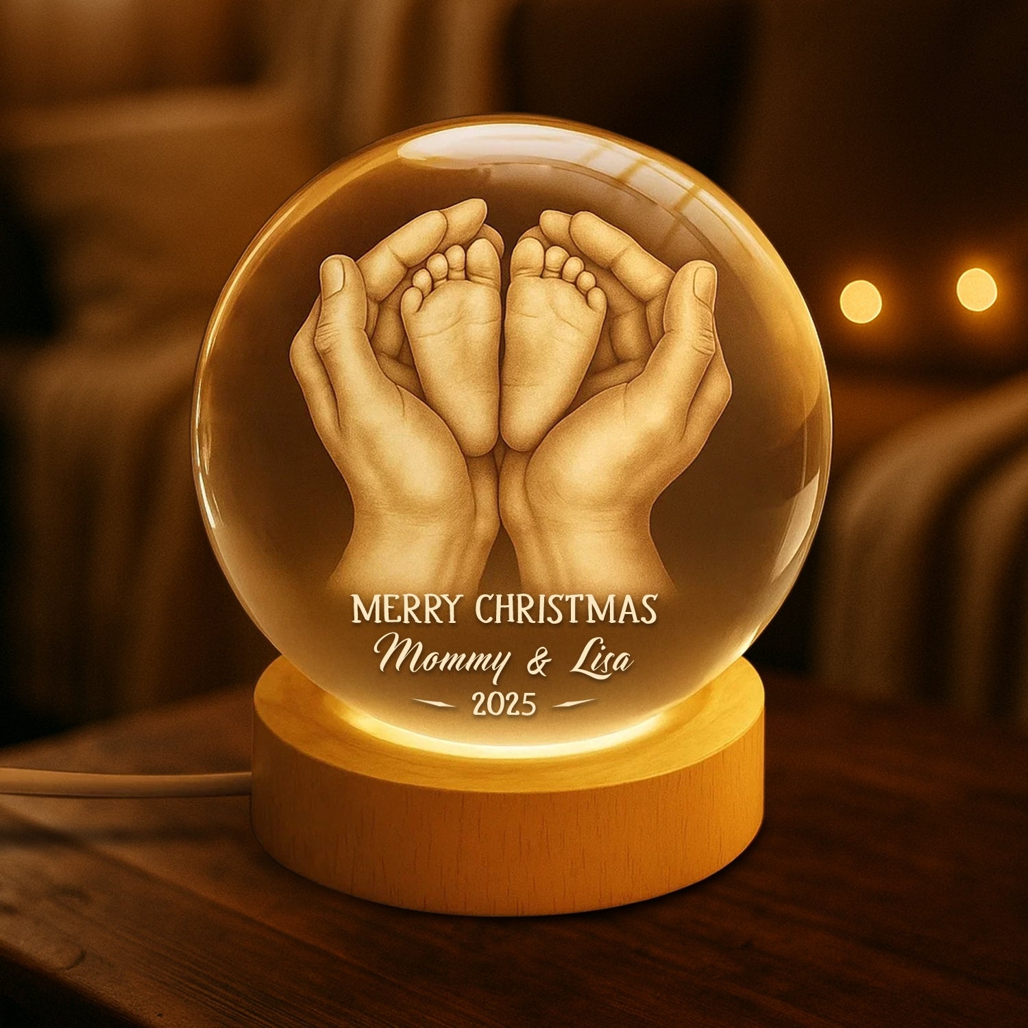 The highlight of this piece is the customizable crystal ball, where your chosen photo is laser-engraved with stunning precision, creating a captivating 3D effect. When illuminated, the light gently shines through the crystal, casting a soft, warm glow that adds charm and warmth to any room.